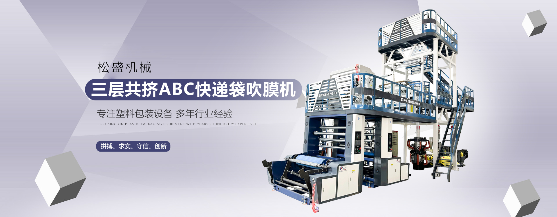 瑞安市松盛機械有限公司,創辦于2008年,位于浙江省瑞安市,是一家主要從事成套塑料包裝設備的企業,主要產品有ABC、ABA、多層共擠吹膜機、全生物降解吹膜機、全自動高速熱切制袋機、以及印刷機、造粒機等。產品遠銷歐美、東南亞、非洲、中東等。市場反應良好,產品深受客戶喜愛。公司秉承“科技創新使企業騰飛”的宗旨,公司研發(fā)團隊的不斷對產品改進和提升,先后榮獲國家高新企業、浙江科技型企業稱號,并獲得幾十項國家專利。 卓越的信譽,一流的品質,完好的服務是我們永恒的宗旨和奮斗目標,松盛機械愿與國內外客戶攜手共創美好明天。